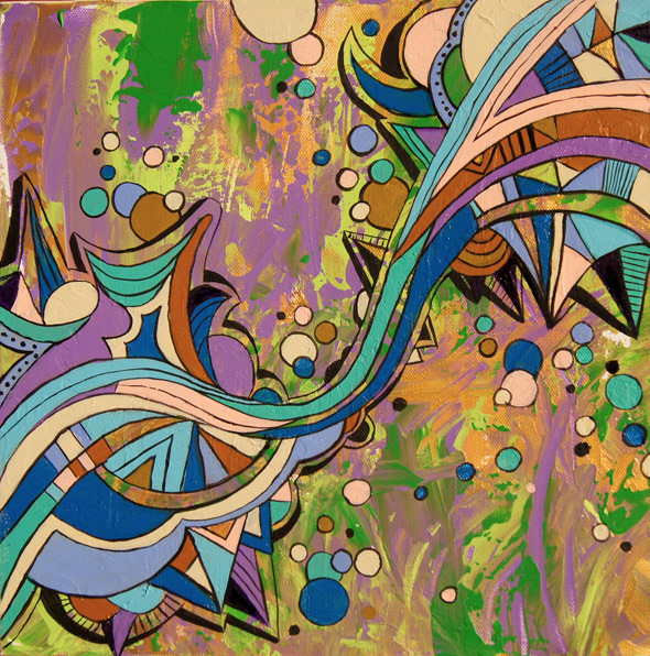 A colorful and playful balance of shapes and colors.